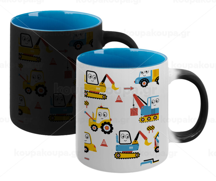 Hand drawing building truck, Κούπα Μαγική εσωτερικό μπλε, κεραμική 330ml που αλλάζει χρώμα με το ζεστό ρόφημα