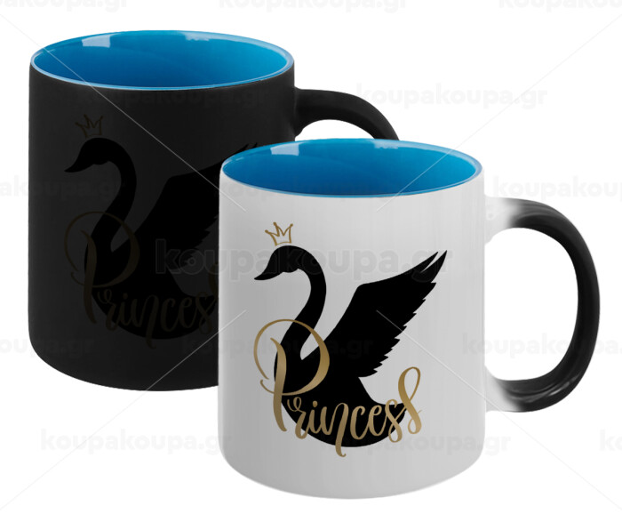 Swan Princess, Κούπα Μαγική εσωτερικό μπλε, κεραμική 330ml που αλλάζει χρώμα με το ζεστό ρόφημα