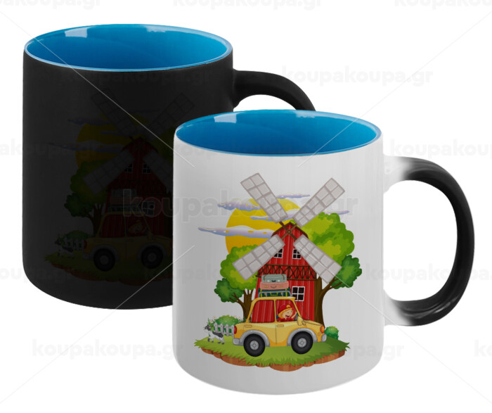 Toy car, Κούπα Μαγική εσωτερικό μπλε, κεραμική 330ml που αλλάζει χρώμα με το ζεστό ρόφημα