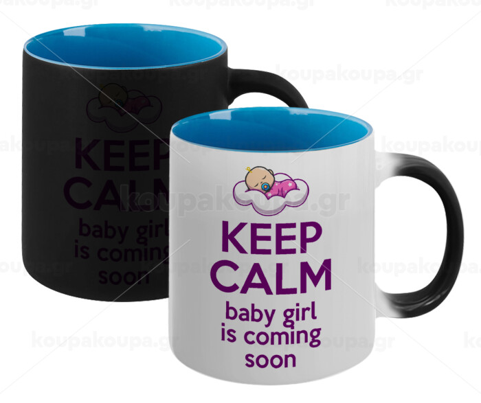 KEEP CALM baby girl is coming soon!!!, Κούπα Μαγική εσωτερικό μπλε, κεραμική 330ml που αλλάζει χρώμα με το ζεστό ρόφημα