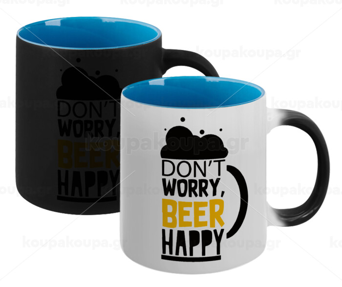 Don't worry BEER Happy, Κούπα Μαγική εσωτερικό μπλε, κεραμική 330ml που αλλάζει χρώμα με το ζεστό ρόφημα