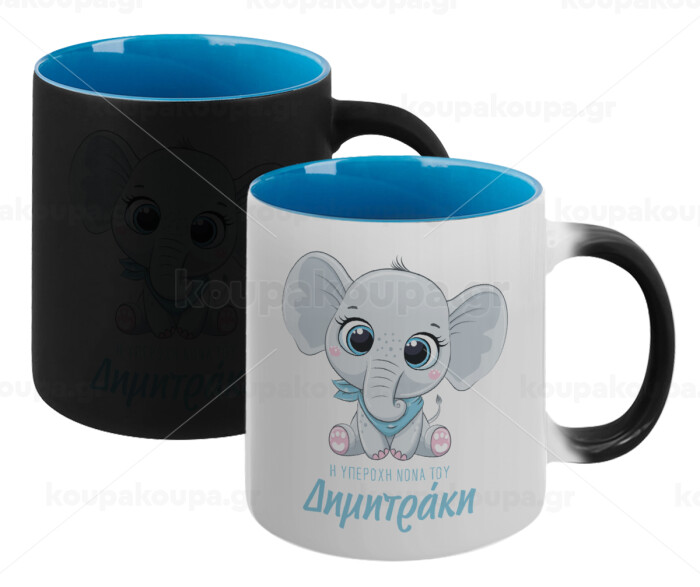Η νονά μου, ελεφαντάκι γαλάζιο, Κούπα Μαγική εσωτερικό μπλε, κεραμική 330ml που αλλάζει χρώμα με το ζεστό ρόφημα