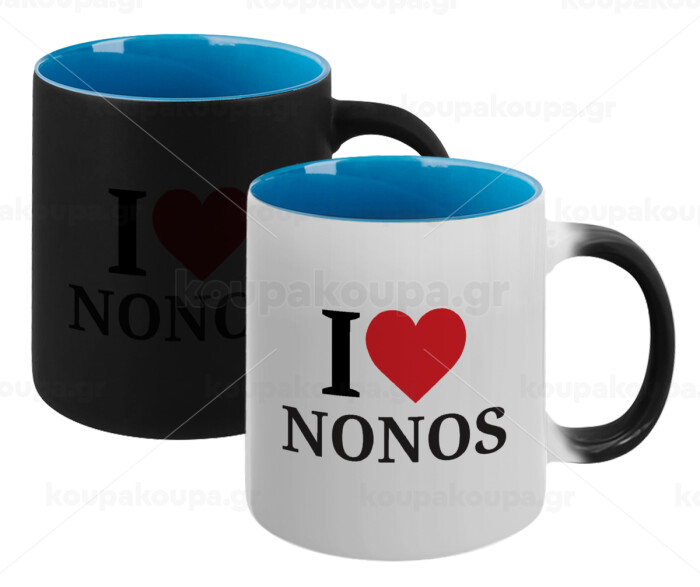 I Love ΝΟΝΟΣ, Κούπα Μαγική εσωτερικό μπλε, κεραμική 330ml που αλλάζει χρώμα με το ζεστό ρόφημα