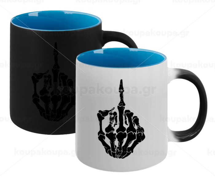 Middle finger, Κούπα Μαγική εσωτερικό μπλε, κεραμική 330ml που αλλάζει χρώμα με το ζεστό ρόφημα