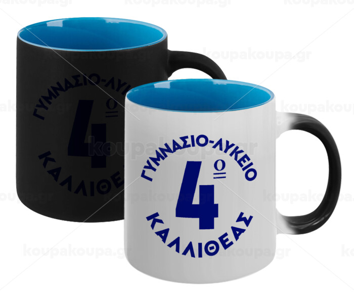 Έμβλημα Σχολικό μπλε κλασικό, Κούπα Μαγική εσωτερικό μπλε, κεραμική 330ml που αλλάζει χρώμα με το ζεστό ρόφημα