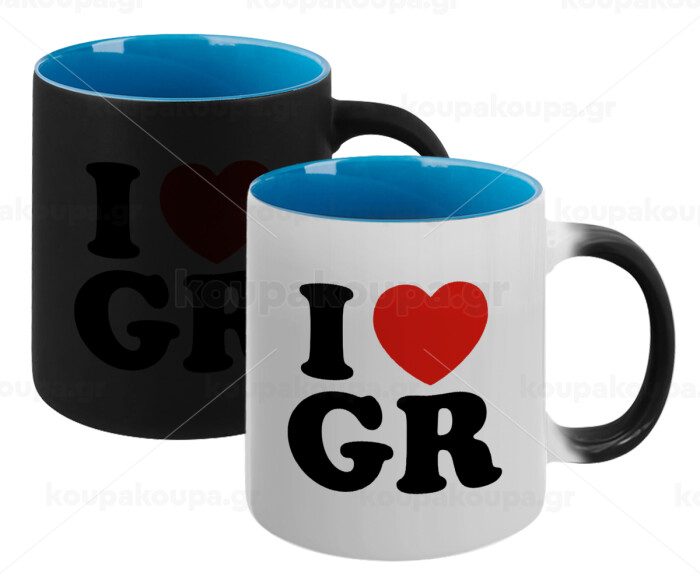 I Love GR, Κούπα Μαγική εσωτερικό μπλε, κεραμική 330ml που αλλάζει χρώμα με το ζεστό ρόφημα