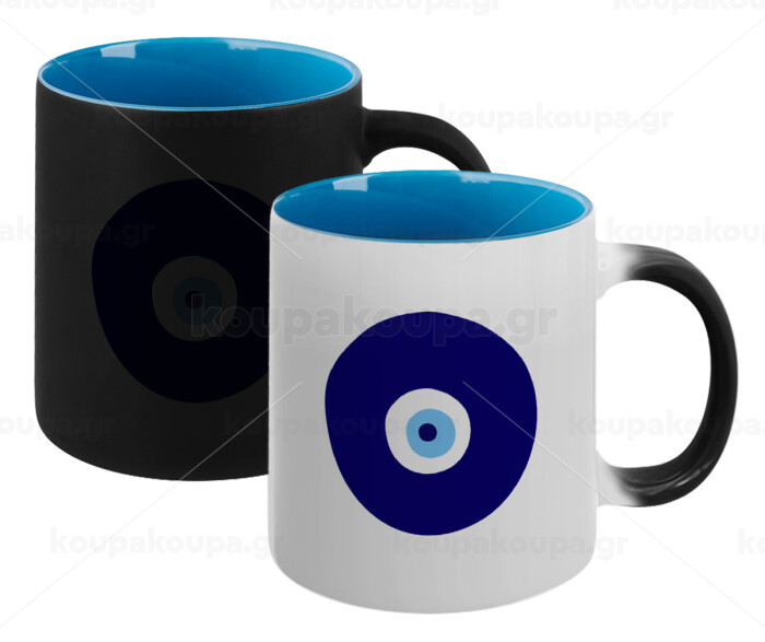 Χάντρα γαλαζιά, Κούπα Μαγική εσωτερικό μπλε, κεραμική 330ml που αλλάζει χρώμα με το ζεστό ρόφημα