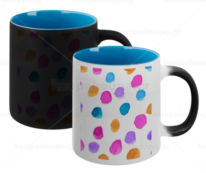 Watercolor dots, Κούπα Μαγική εσωτερικό μπλε, κεραμική 330ml που αλλάζει χρώμα με το ζεστό ρόφημα