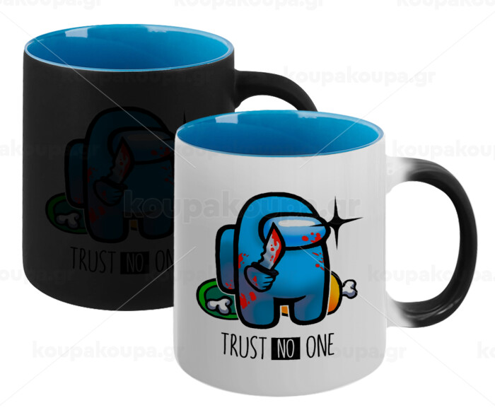 Among Trust no one, Κούπα Μαγική εσωτερικό μπλε, κεραμική 330ml που αλλάζει χρώμα με το ζεστό ρόφημα
