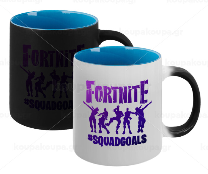 Fortnite #squadgoals, Κούπα Μαγική εσωτερικό μπλε, κεραμική 330ml που αλλάζει χρώμα με το ζεστό ρόφημα