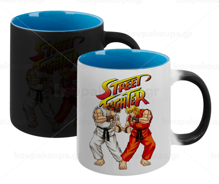 Street fighter, Κούπα Μαγική εσωτερικό μπλε, κεραμική 330ml που αλλάζει χρώμα με το ζεστό ρόφημα