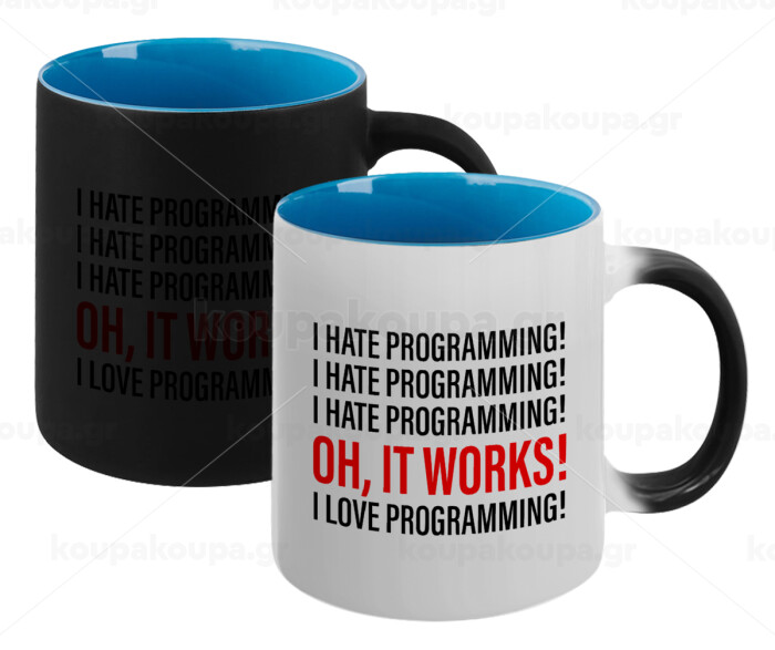 I hate programming!!!, Κούπα Μαγική εσωτερικό μπλε, κεραμική 330ml που αλλάζει χρώμα με το ζεστό ρόφημα