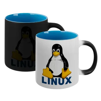 Linux, Κούπα Μαγική εσωτερικό μπλε, κεραμική 330ml που αλλάζει χρώμα με το ζεστό ρόφημα