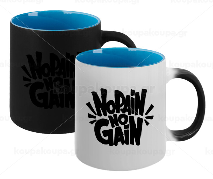 No pain no gain, Κούπα Μαγική εσωτερικό μπλε, κεραμική 330ml που αλλάζει χρώμα με το ζεστό ρόφημα