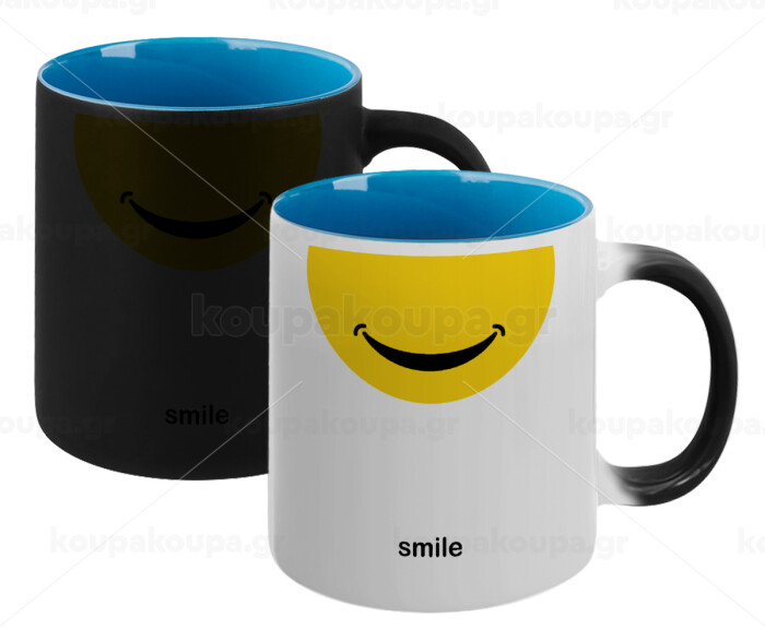 Smile Mug, Κούπα Μαγική εσωτερικό μπλε, κεραμική 330ml που αλλάζει χρώμα με το ζεστό ρόφημα