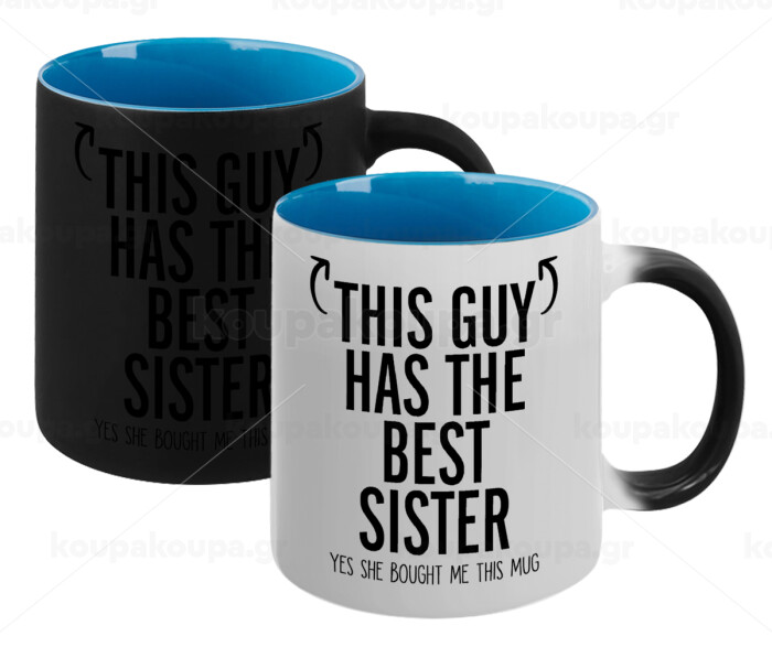 This guy has the best Sister, Κούπα Μαγική εσωτερικό μπλε, κεραμική 330ml που αλλάζει χρώμα με το ζεστό ρόφημα