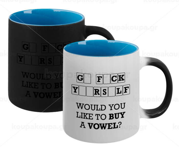 Wheel of fortune, go f..k yourself, Κούπα Μαγική εσωτερικό μπλε, κεραμική 330ml που αλλάζει χρώμα με το ζεστό ρόφημα