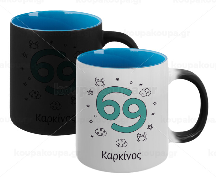 Ζώδια Καρκίνος, Κούπα Μαγική εσωτερικό μπλε, κεραμική 330ml που αλλάζει χρώμα με το ζεστό ρόφημα