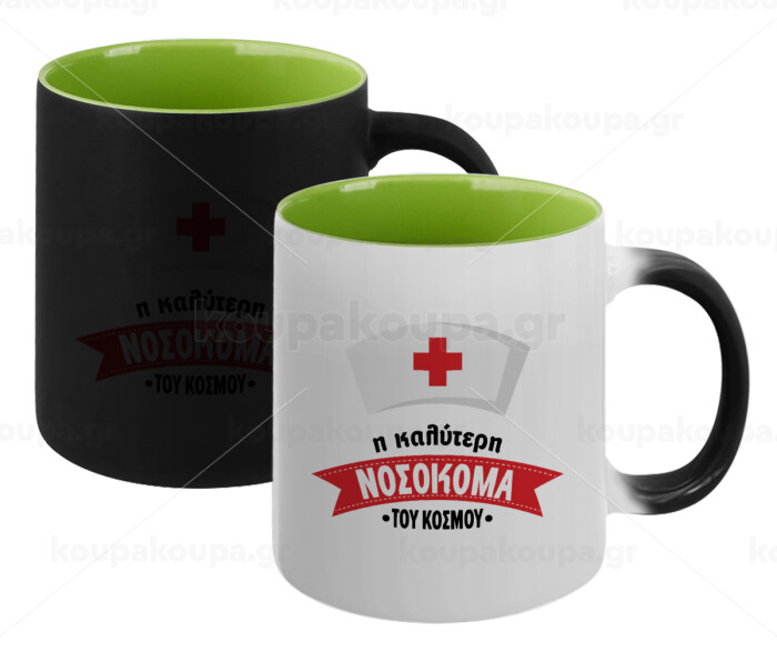 Η καλύτερη νοσοκόμα του κόσμου!!!, Κούπα Μαγική εσωτερικό πράσινο, κεραμική 330ml που αλλάζει χρώμα με το ζεστό ρόφημα