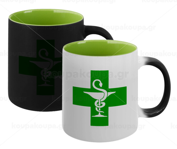 Φαρμακείο, Κούπα Μαγική εσωτερικό πράσινο, κεραμική 330ml που αλλάζει χρώμα με το ζεστό ρόφημα