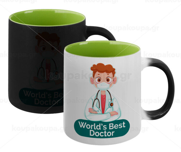 World's Best Doctor, Κούπα Μαγική εσωτερικό πράσινο, κεραμική 330ml που αλλάζει χρώμα με το ζεστό ρόφημα