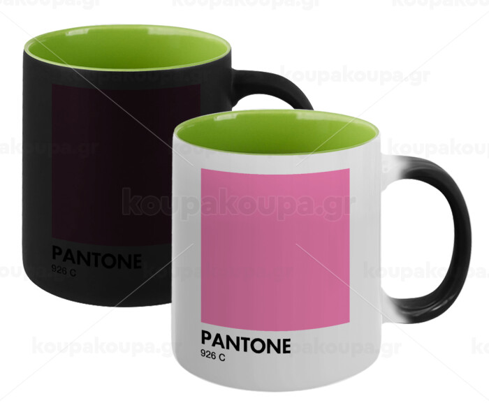 PANTONE Pink C, Κούπα Μαγική εσωτερικό πράσινο, κεραμική 330ml που αλλάζει χρώμα με το ζεστό ρόφημα