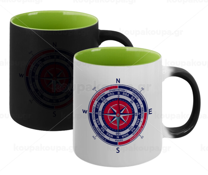Ανεμολόγιο χάρτης πυξίδα ναυτικού, Κούπα Μαγική εσωτερικό πράσινο, κεραμική 330ml που αλλάζει χρώμα με το ζεστό ρόφημα
