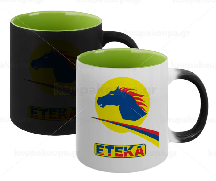 Πρατήριο καυσίμων ETEKA, Κούπα Μαγική εσωτερικό πράσινο, κεραμική 330ml που αλλάζει χρώμα με το ζεστό ρόφημα