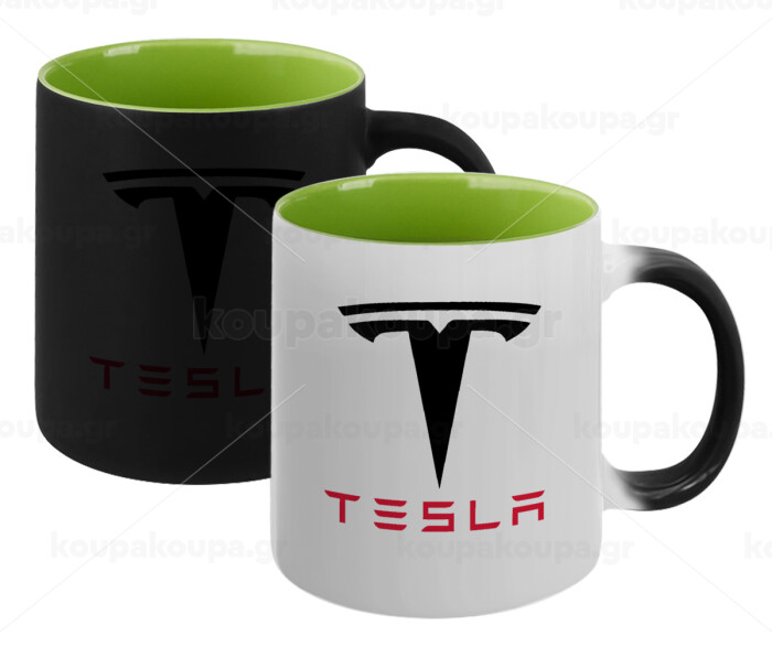 Tesla motors, Κούπα Μαγική εσωτερικό πράσινο, κεραμική 330ml που αλλάζει χρώμα με το ζεστό ρόφημα