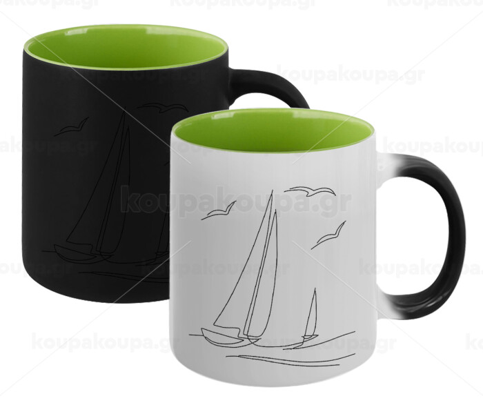 Ιστιοπλοΐα Sailing, Κούπα Μαγική εσωτερικό πράσινο, κεραμική 330ml που αλλάζει χρώμα με το ζεστό ρόφημα