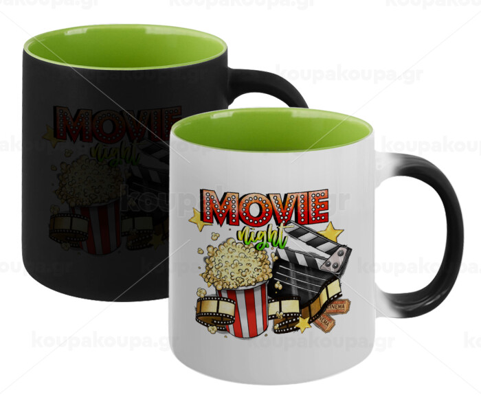 Movie night, Κούπα Μαγική εσωτερικό πράσινο, κεραμική 330ml που αλλάζει χρώμα με το ζεστό ρόφημα