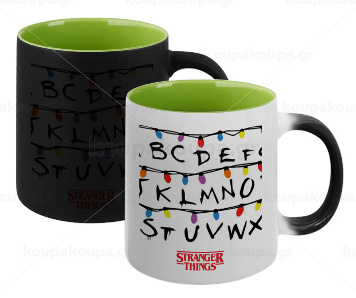 Stranger Things ABC, Κούπα Μαγική εσωτερικό πράσινο, κεραμική 330ml που αλλάζει χρώμα με το ζεστό ρόφημα