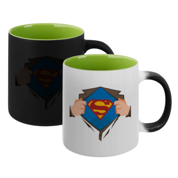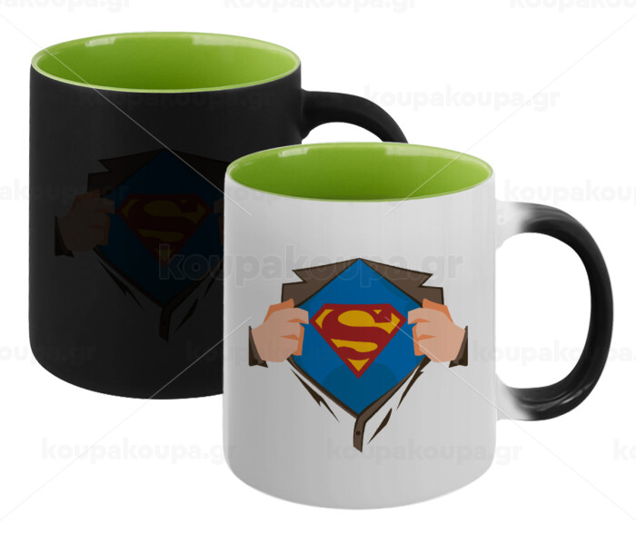 Superman hands, Κούπα Μαγική εσωτερικό πράσινο, κεραμική 330ml που αλλάζει χρώμα με το ζεστό ρόφημα
