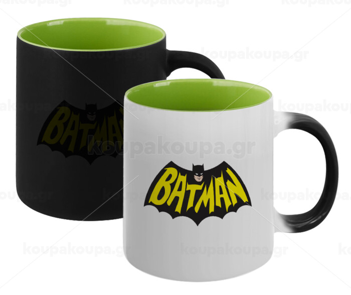 Batman classic logo, Κούπα Μαγική εσωτερικό πράσινο, κεραμική 330ml που αλλάζει χρώμα με το ζεστό ρόφημα