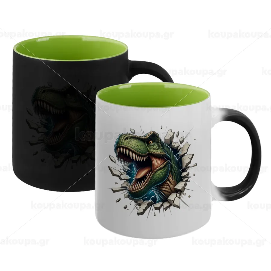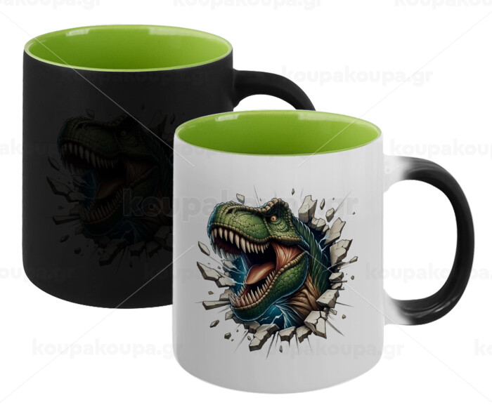 Dinosaur break wall, Κούπα Μαγική εσωτερικό πράσινο, κεραμική 330ml που αλλάζει χρώμα με το ζεστό ρόφημα