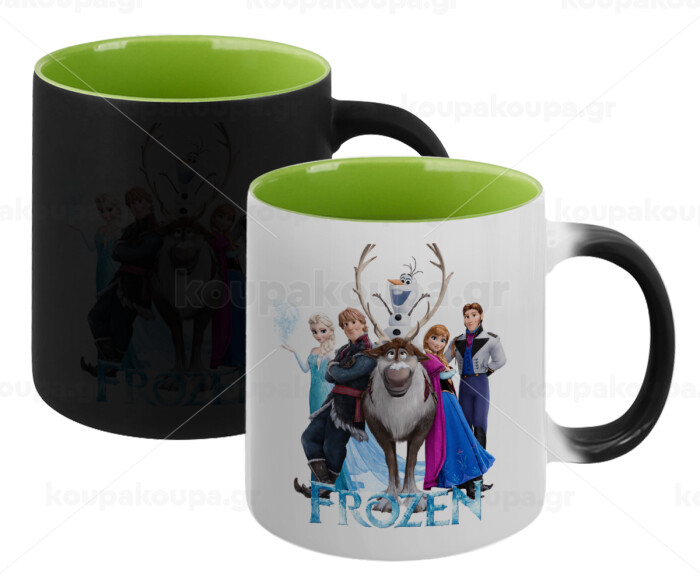 Frozen, Κούπα Μαγική εσωτερικό πράσινο, κεραμική 330ml που αλλάζει χρώμα με το ζεστό ρόφημα