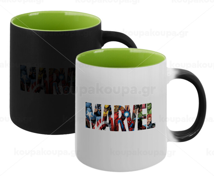 MARVEL characters, Κούπα Μαγική εσωτερικό πράσινο, κεραμική 330ml που αλλάζει χρώμα με το ζεστό ρόφημα