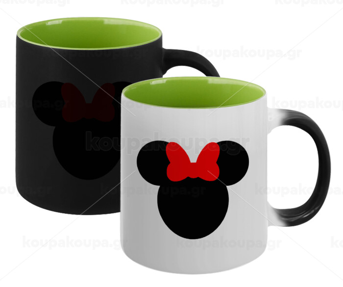 Minnie head, Κούπα Μαγική εσωτερικό πράσινο, κεραμική 330ml που αλλάζει χρώμα με το ζεστό ρόφημα