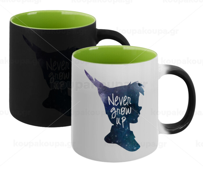 Never Grow UP, Κούπα Μαγική εσωτερικό πράσινο, κεραμική 330ml που αλλάζει χρώμα με το ζεστό ρόφημα