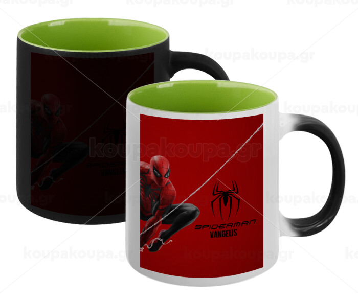 Spiderman, Κούπα Μαγική εσωτερικό πράσινο, κεραμική 330ml που αλλάζει χρώμα με το ζεστό ρόφημα