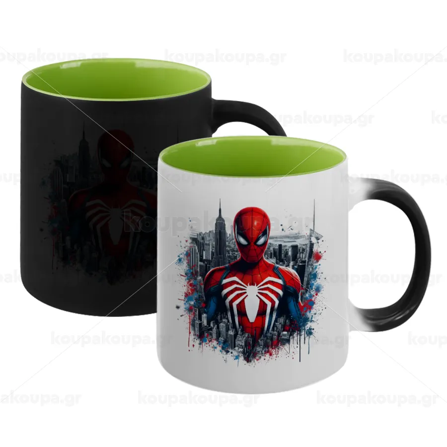 Spiderman City, Κούπα Μαγική εσωτερικό πράσινο, κεραμική 330ml που αλλάζει χρώμα με το ζεστό ρόφημα