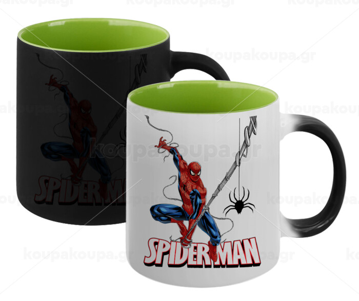 Spiderman fly, Κούπα Μαγική εσωτερικό πράσινο, κεραμική 330ml που αλλάζει χρώμα με το ζεστό ρόφημα