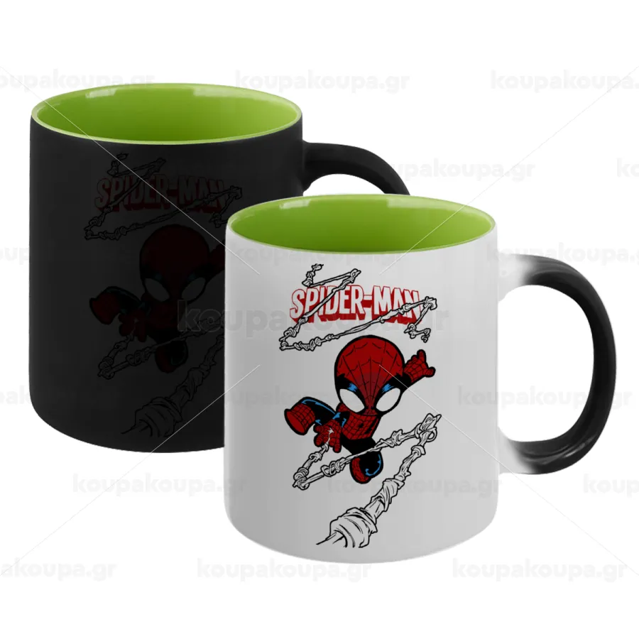 Spiderman kid, Κούπα Μαγική εσωτερικό πράσινο, κεραμική 330ml που αλλάζει χρώμα με το ζεστό ρόφημα