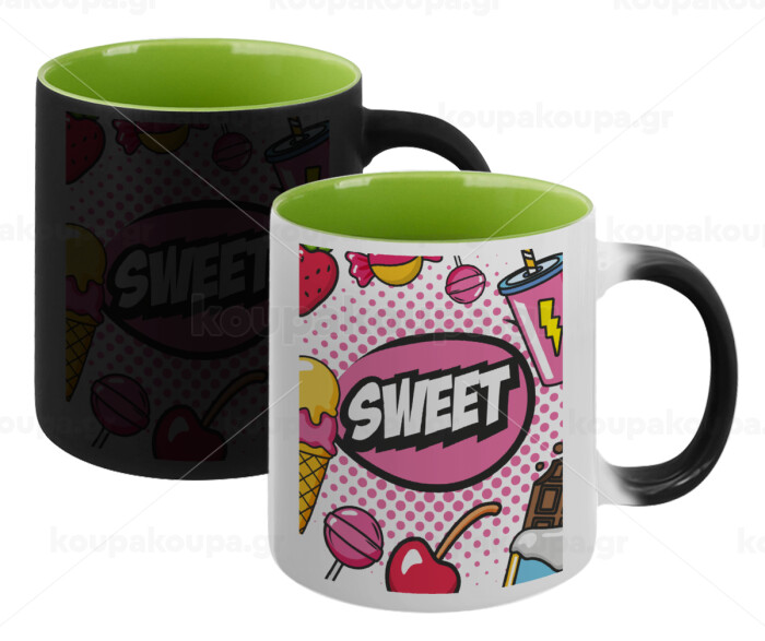 SWEET, Κούπα Μαγική εσωτερικό πράσινο, κεραμική 330ml που αλλάζει χρώμα με το ζεστό ρόφημα