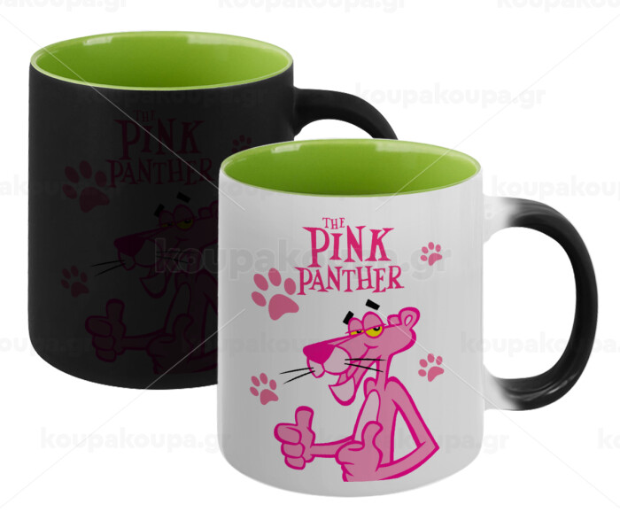 The pink panther, Κούπα Μαγική εσωτερικό πράσινο, κεραμική 330ml που αλλάζει χρώμα με το ζεστό ρόφημα