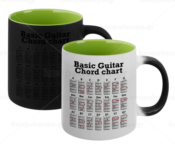 Συγχορδίες κιθάρας, Κούπα Μαγική εσωτερικό πράσινο, κεραμική 330ml που αλλάζει χρώμα με το ζεστό ρόφημα