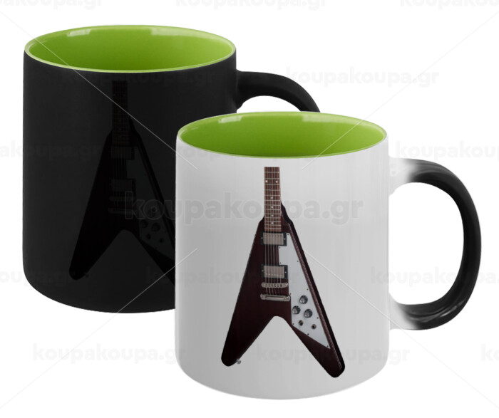 Guitar flying V, Κούπα Μαγική εσωτερικό πράσινο, κεραμική 330ml που αλλάζει χρώμα με το ζεστό ρόφημα