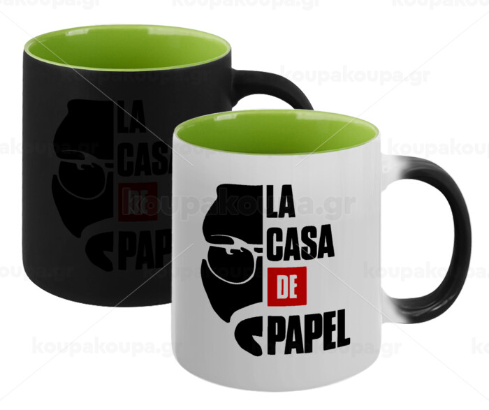 La casa de papel, Κούπα Μαγική εσωτερικό πράσινο, κεραμική 330ml που αλλάζει χρώμα με το ζεστό ρόφημα