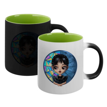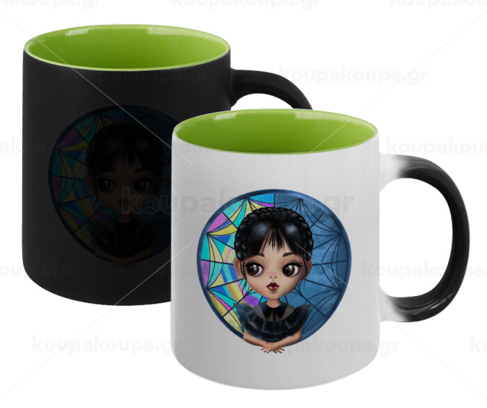 Wednesday big eyes, Κούπα Μαγική εσωτερικό πράσινο, κεραμική 330ml που αλλάζει χρώμα με το ζεστό ρόφημα