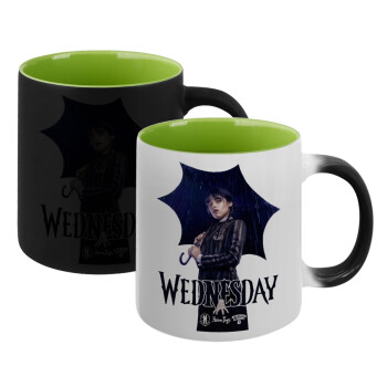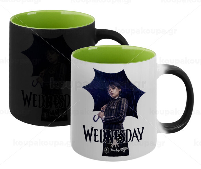 Wednesday rain, Κούπα Μαγική εσωτερικό πράσινο, κεραμική 330ml που αλλάζει χρώμα με το ζεστό ρόφημα